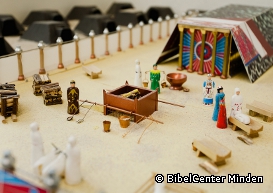 Dieses Ausstellungsstück ist eines von mehreren Modellen, welche im BibelCenter Minden zahlreiche Informationstafeln unterstützen, die mit der Geschichte und der Botschaft der Bibel vertraut machen.